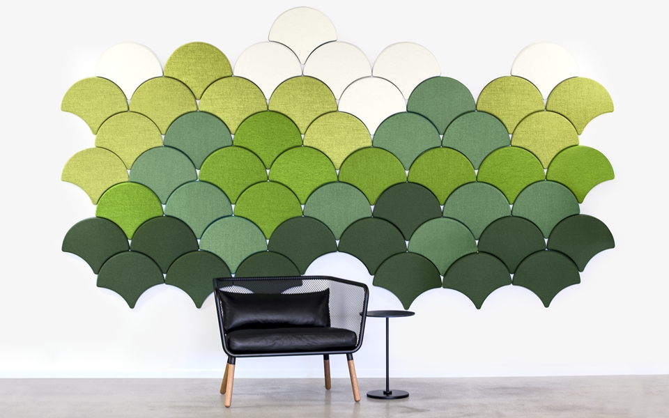 由西班牙Stone Designs设计事务所设计、瑞典bla station制造商生产的银杏叶吸音板,于2014年在斯德哥尔摩家具展上惊艳呈现。